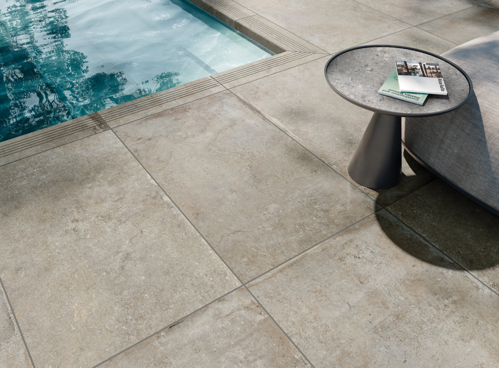 Wir führen eine große Auswahl an Outdoor Keramik mit 2cm oder 3cm in verschiedensten Formaten, von klassischen 60x60 bis zu Großformaten wie 120x120. Sonderteile wie gefaste Stufentritte, abgerundete Poolumrandungen oder Rigole können wir von allen Ihren ausgewählten Terrassenfliesen anfertigen lassen.