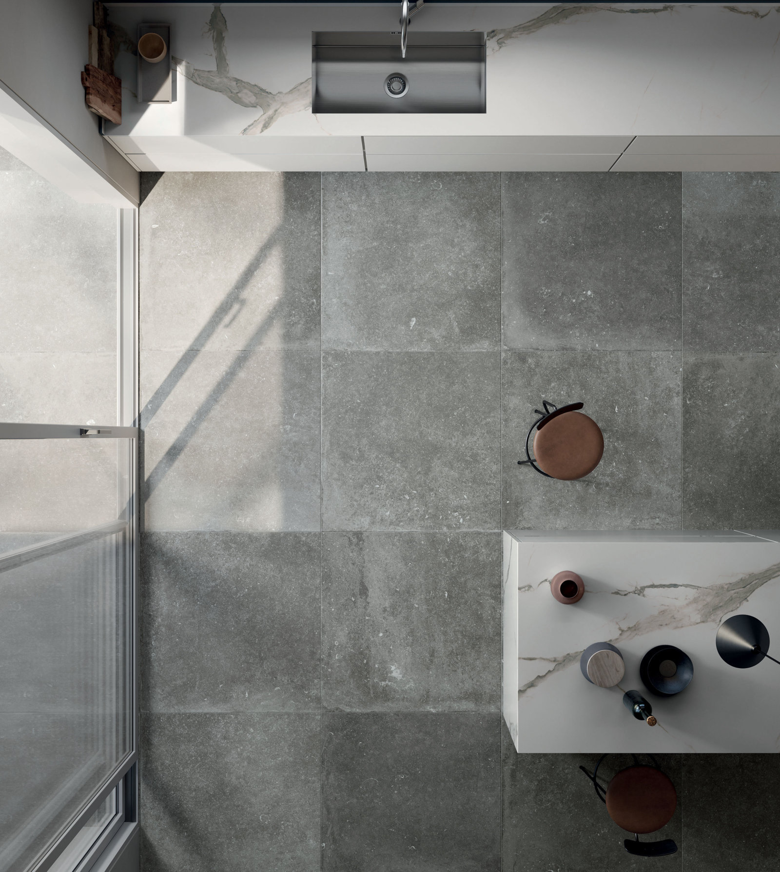 Als Inspirationsquelle der Textur von Celtic dienen verschiedenen Sedimentgesteine, ursprünglich aus Belgien stammende Steine und Shellstones. Die für Kontrast sorgenden dünnen Maserungen, die Fossilien und die künstliche Alterung bereichern die Oberfläche und machen daraus ein rustikal schickes Produkt, das mit den markanteren Oberflächen wie Holz-Optik, Beton und den Metallen industrieller Inspiration eine perfekte Bindung eingeht.