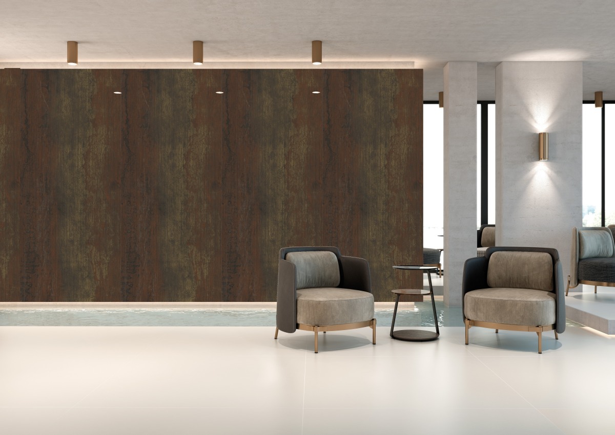 Eine neue und moderne Interpretation der Bronze Optik. Verfügbar in 120x280 und 60x120 passt diese Metalloptik perfekt in Ihr Bad oder Küche.