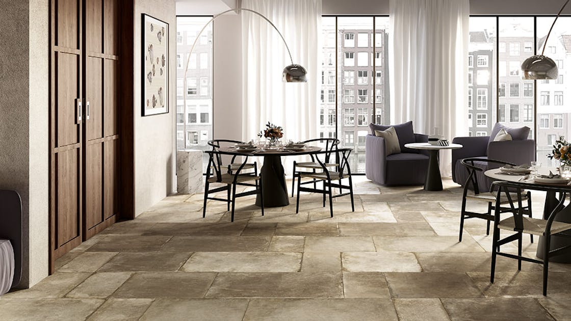 Die reizvolle Serie Lyon mit ihrer natürlichen Wirkung übernimmt die Idee eines alten, wiederverwendeten Steins, der die Zeit überdauert hat, um in der Gegenwart zu neuem Leben zu erwachen. Die Kollektion wird in 3 für eine größere Verlege-Vielfalt miteinander kombinierbaren Formaten und 4 warmen und kalten Farben angeboten, die für intensive abgetönte Effekte sorgen. Die Oberfläche ist unregelmäßig, beinahe, als hätte die ablaufende Zeit Spuren hinterlassen: Dieses Aussehen verleiht dem Feinsteinzeug mit Steinoptik Wärme und Charme und eignet sich gut für moderne, raffinierte Umgebungen.