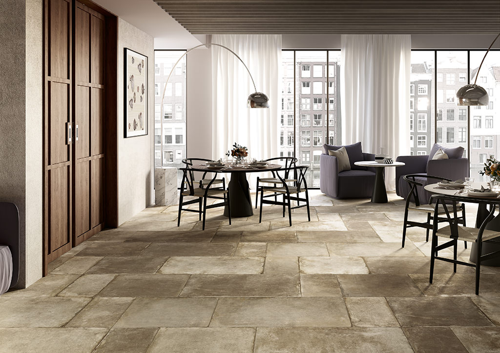 Die reizvolle Serie Lyon mit ihrer natürlichen Wirkung übernimmt die Idee eines alten, wiederverwendeten Steins, der die Zeit überdauert hat, um in der Gegenwart zu neuem Leben zu erwachen. Die Kollektion wird in 3 für eine größere Verlege-Vielfalt miteinander kombinierbaren Formaten und 4 warmen und kalten Farben angeboten, die für intensive abgetönte Effekte sorgen. Die Oberfläche ist unregelmäßig, beinahe, als hätte die ablaufende Zeit Spuren hinterlassen: Dieses Aussehen verleiht dem Feinsteinzeug mit Steinoptik Wärme und Charme und eignet sich gut für moderne, raffinierte Umgebungen.