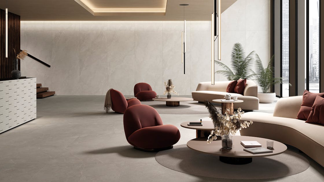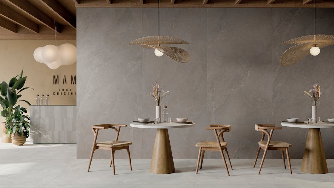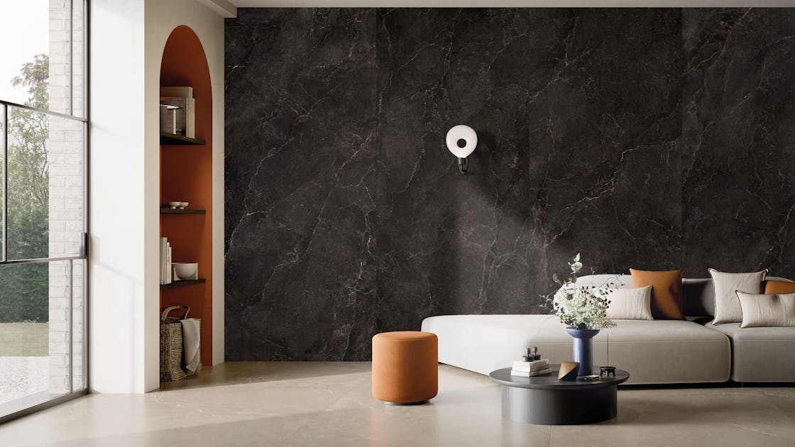Das Feinsteinzeug gibt eine überraschend ausdrucksstarke Materialität zurück: es fühlt sich weich an, hat eine einheitliche Farbe und ausgeprägte Reliefs. Fünf leuchtende Farben, eine breite Palette von Formaten, von der großen Platte 120×280 cm bis zum kleinen Format 30×60 cm. Die Neuheit 2023 ist schließlich die 3D-Satinierung, ein spezieller Soft-Touch”-Effekt der Oberfläche, der durch im Flachrelief eingravierte Adern bereichert wird.