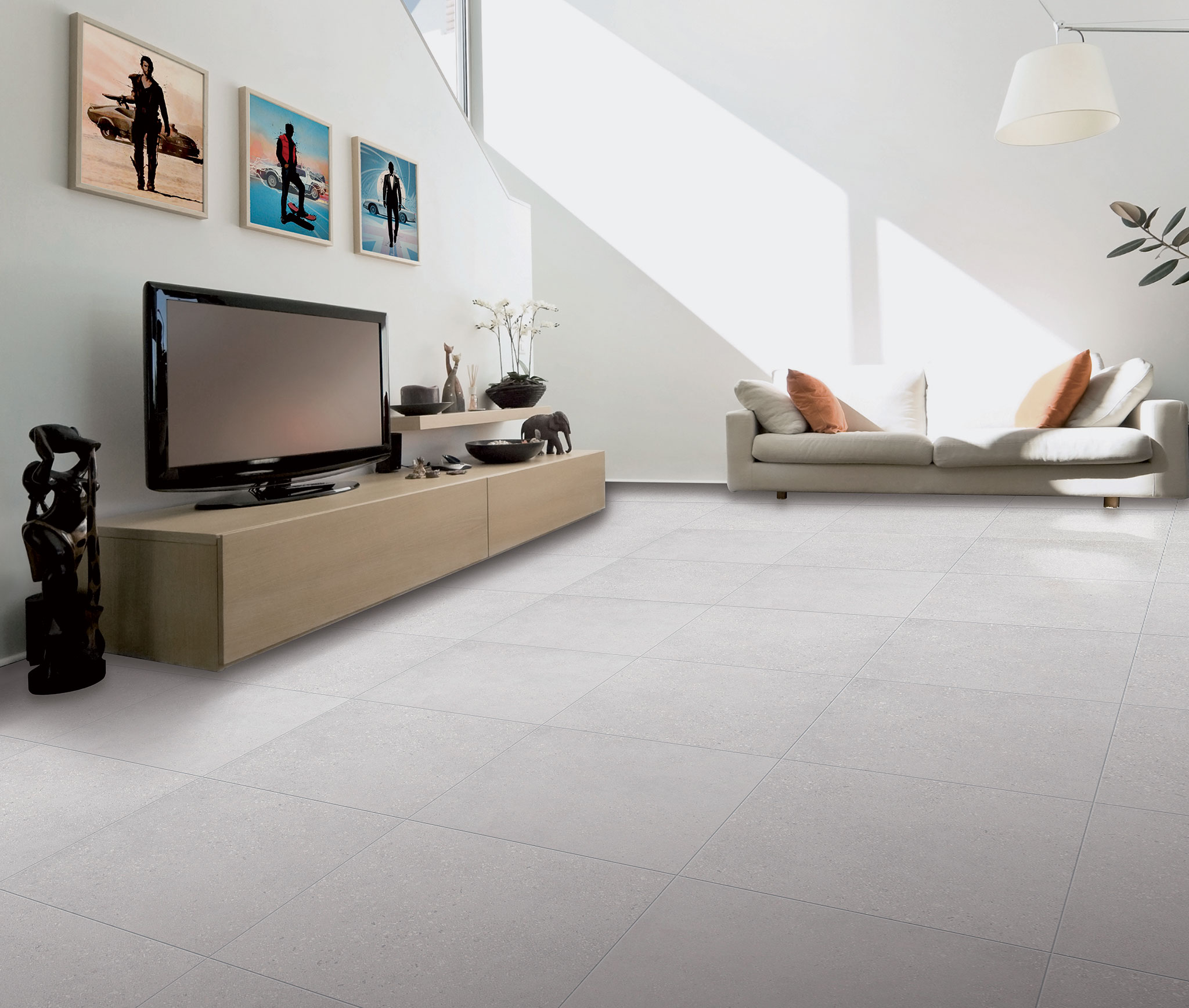 Diese wunderschöne Betonoptik erinnert an den Beton der für die Herstellung von Brücken verwendet wird. Erhältlich im kühlen Grau oder warmen Beige, je nach Wohnstil.