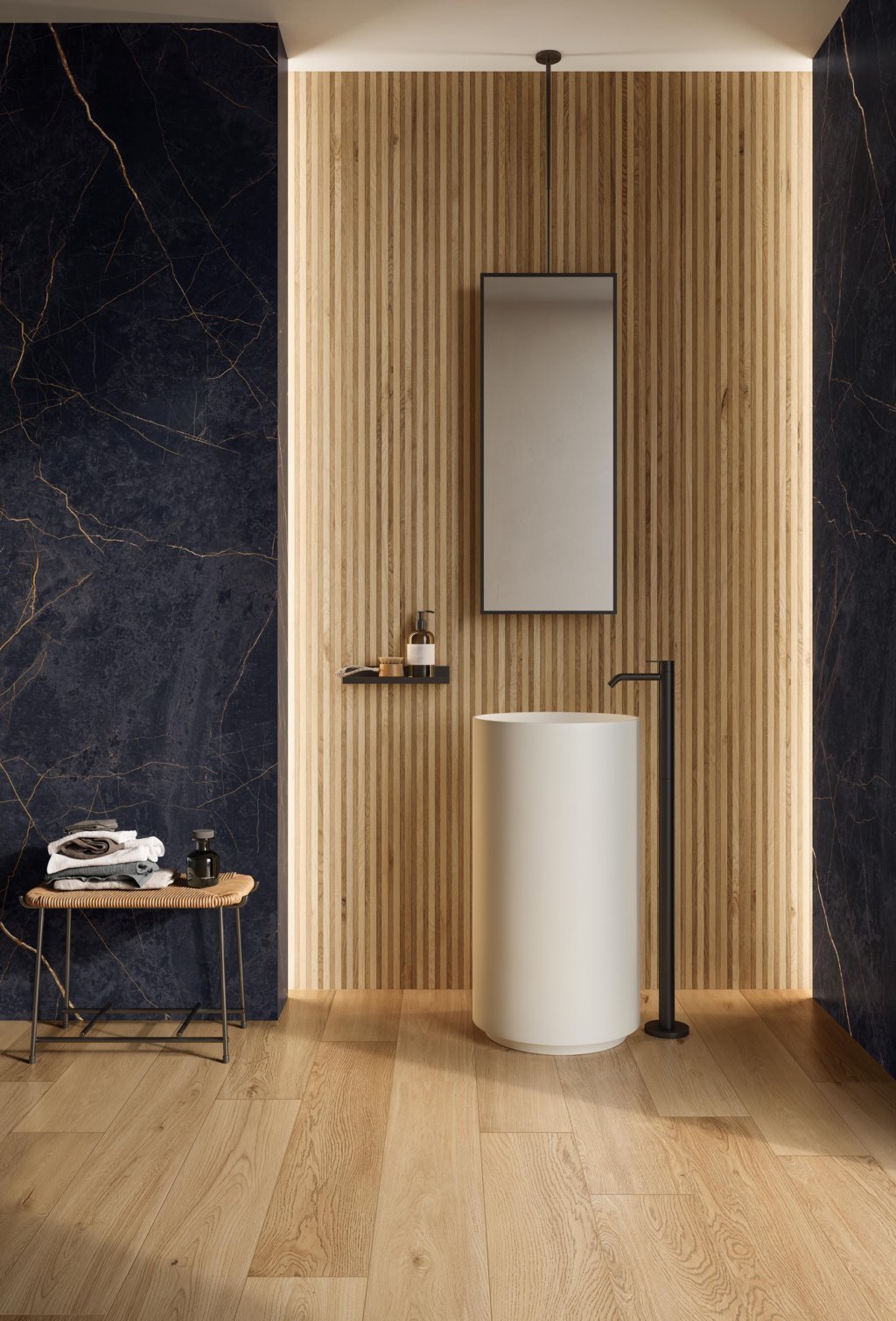 Mit modernster 3D Technologie wird diese neue großformatige Keramik ermöglicht. Täuschend echt sieht diese wie echte Akustikpaneele aus, kann aber anders als das Original auch im Außenbereich und in der Dusche verwendet werden.