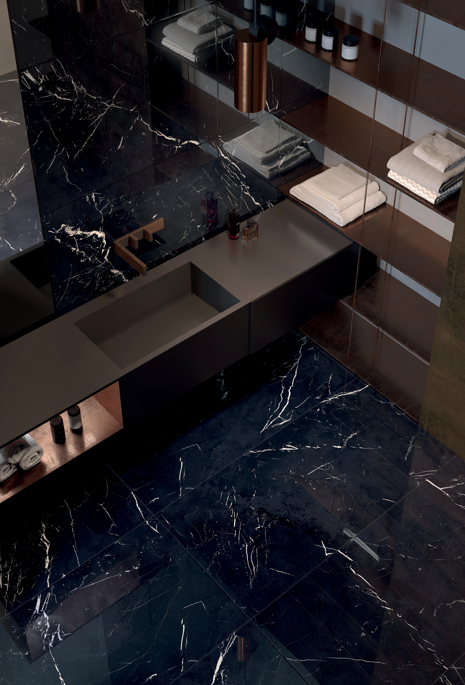 Die Erkundung des Marmoruniversums setzt sich mit Versailles fort. Eine neue Interpretation der Steinflächen, die sich aus einer sorgfältigen Auswahl von luxuriösen und edlen Arten ergibt: vom zeitlosen Statuario Superior zum vielseitigen und informellen Charme von Grey Amani. Ein stets elegantes Schwarz gibt es in Classic Marquinia und Noir Laurent und zum Schluss die neuen trendigen Weißtöne: Invisible Select und Antique White für unendlich viele kreative Lösungen, von dem Fußboden und der Wandverkleidung von Badezimmern bis hin zur Gestaltung aufeinander abgestimmter Einrichtungslösungen und Countertops für die Küche.